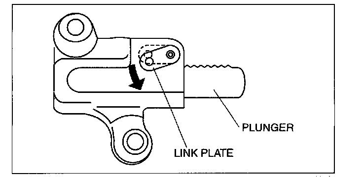 3. Push down the link plate of the timing chain tensioner and release the plunger lock.