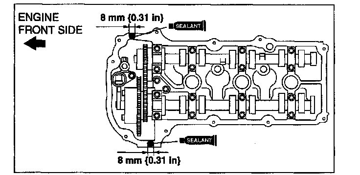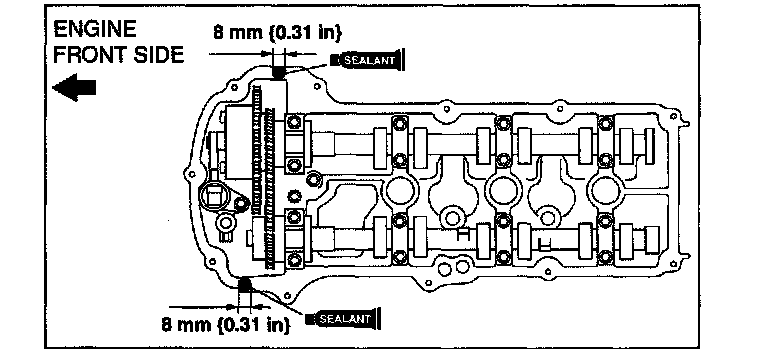 ^ Install the cylinder head cover Installation bolt and studs within 5 min of applying the silicone sealant.