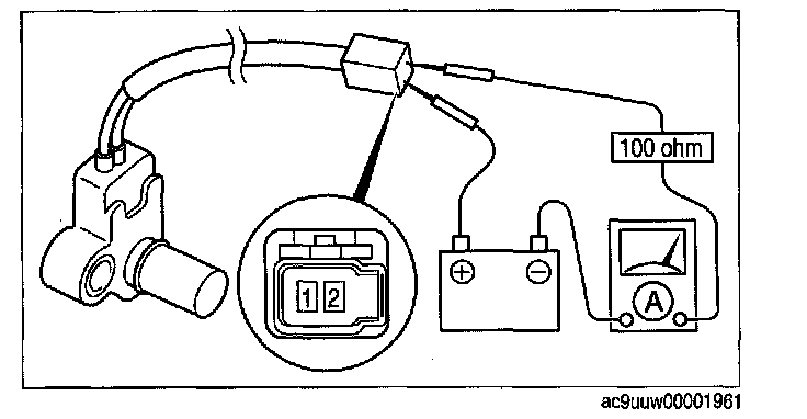3. Connect the VSS terminal 2 to the battery positive terminal, connect the battery negative terminal to VSS terminal 1 through an ammeter set to a resistance of 100 ohm.