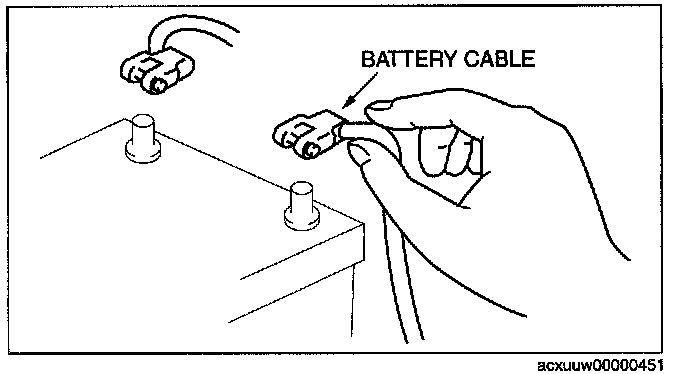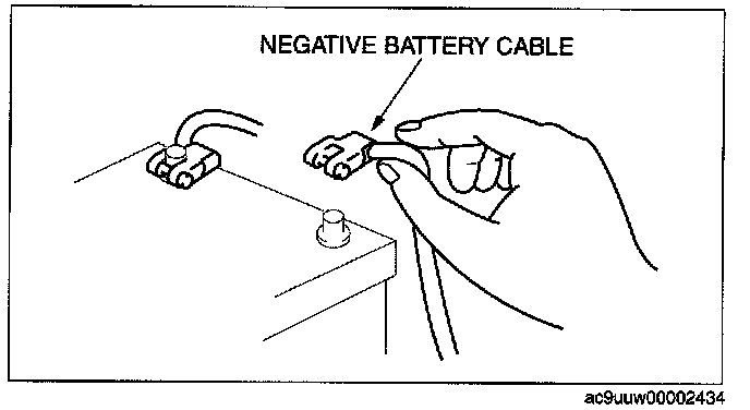 - Before disconnecting connectors or removing electrical parts, disconnect the negative battery cable.