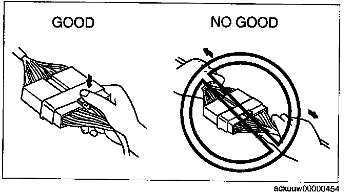 - When disconnecting a connector, grasp the connectors, not the wires.