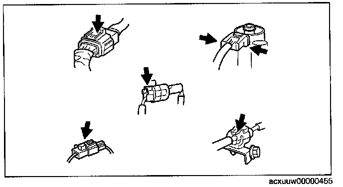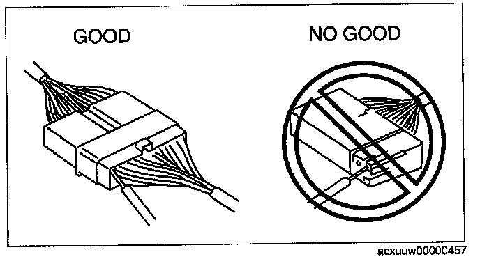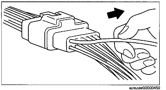- Inspect the terminals of waterproof connectors from the connector side since they cannot be accessed from the wiring harness side.