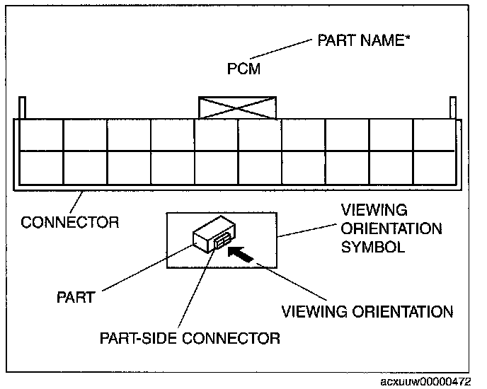 - The figures showing the viewing orientation are the same as those used in Wiring Diagrams. The viewing orientations are shown in the following three ways.
