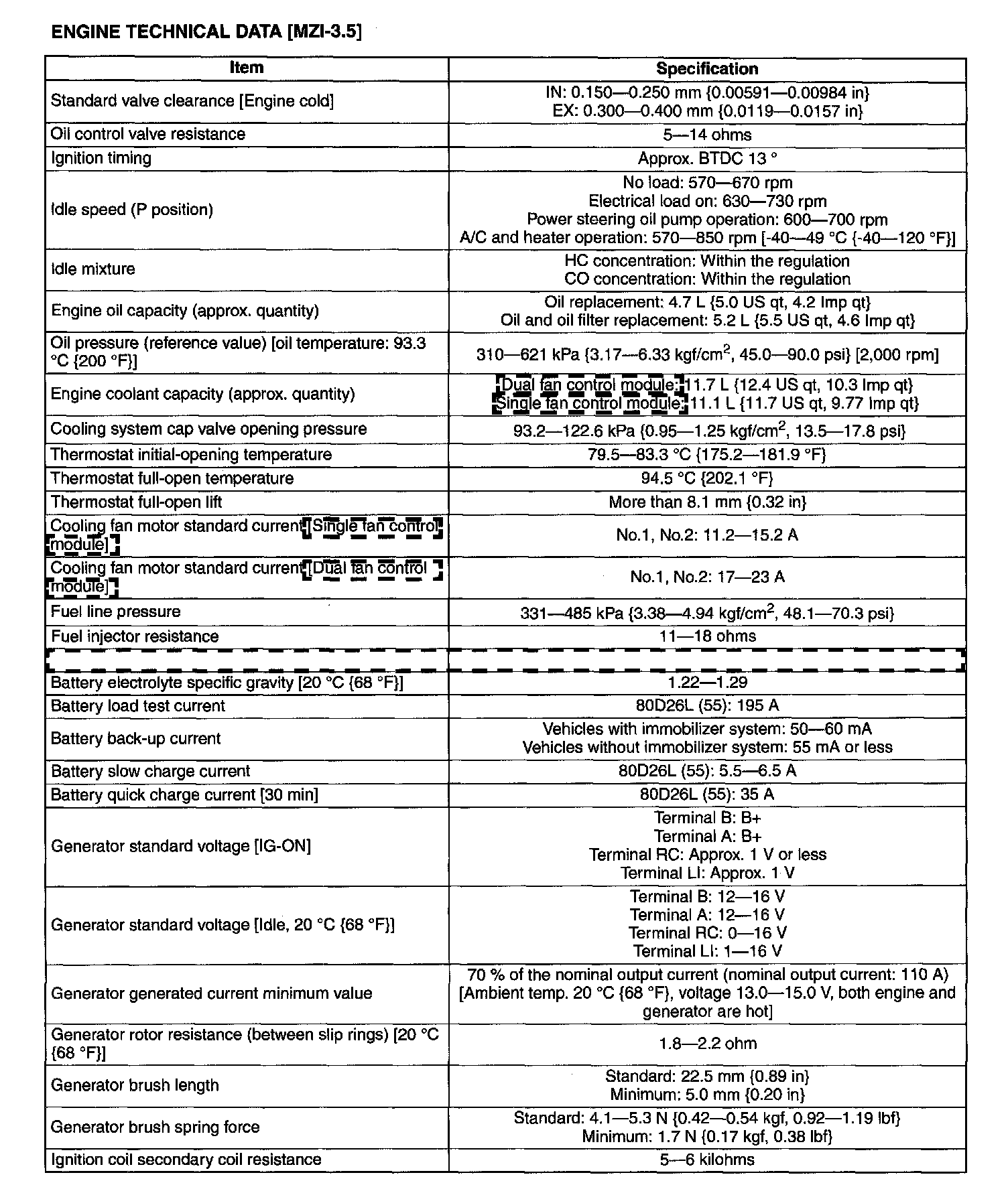 ENGINE TECHNICAL DATA [MZI-3.5]