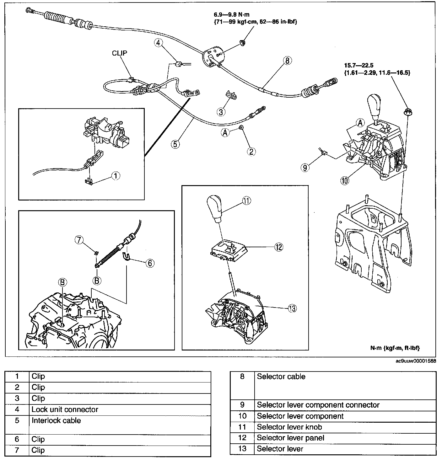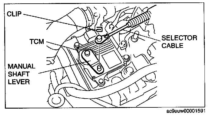 SELECTOR LEVER COMPONENT REMOVAL/INSTALLATION1. Disconnect the negative battery cable.