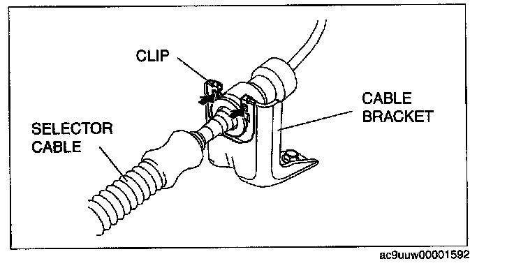 8. Securely install the selector cable to the selector cable bracket.