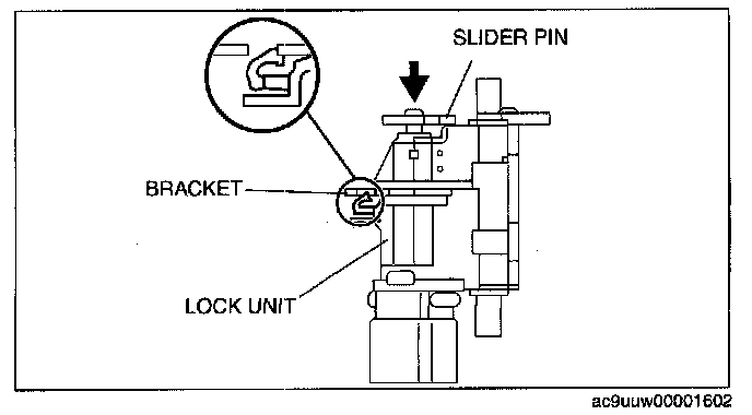 9. With the slider pin pressed, slide the lock unit to fix the lock unit hook into the bracket hole securely as shown in the figure.