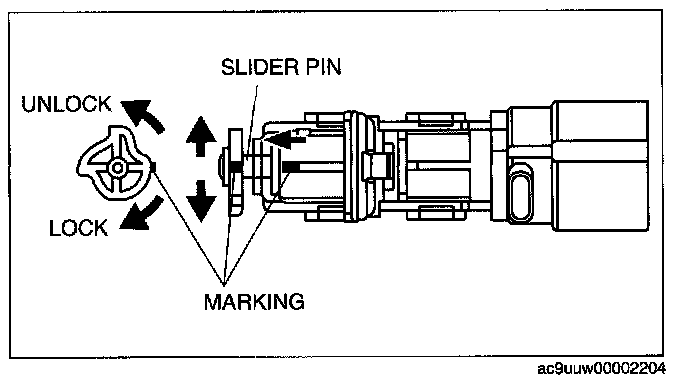 2. Verify that the marking on the slider pin is positioned as shown in the figure.