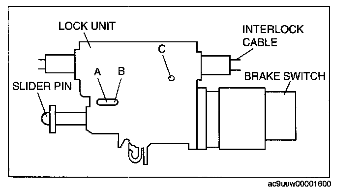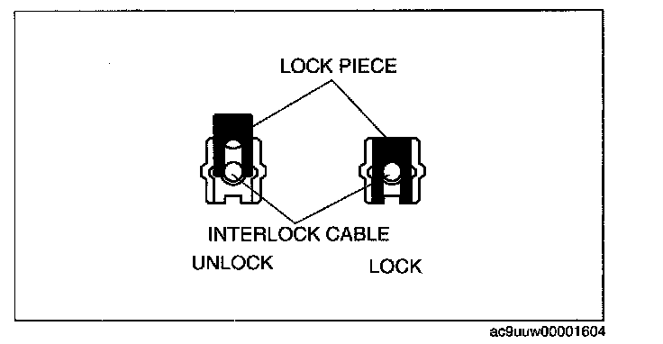 ^ Applying a load to the interlock cable while pressing the lock piece in can affect the lock unit operation.