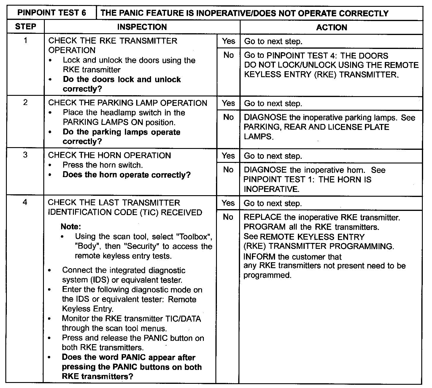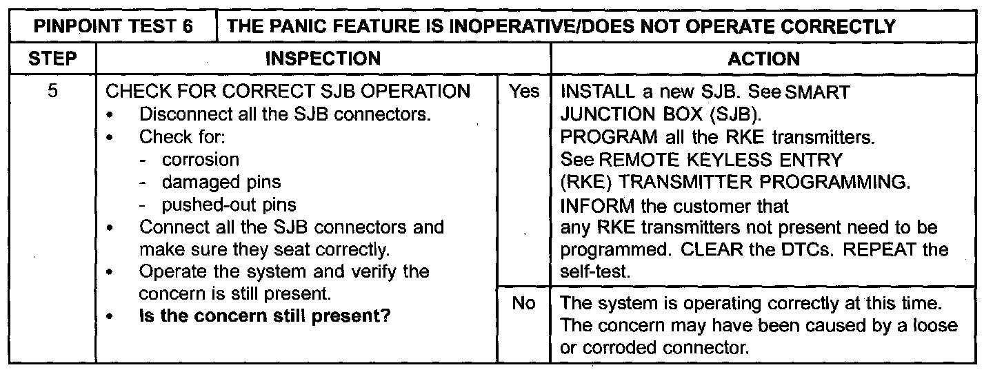Pinpoint Test 6: The Panic Feature Is Inoperative/Does Not Operate Correctly