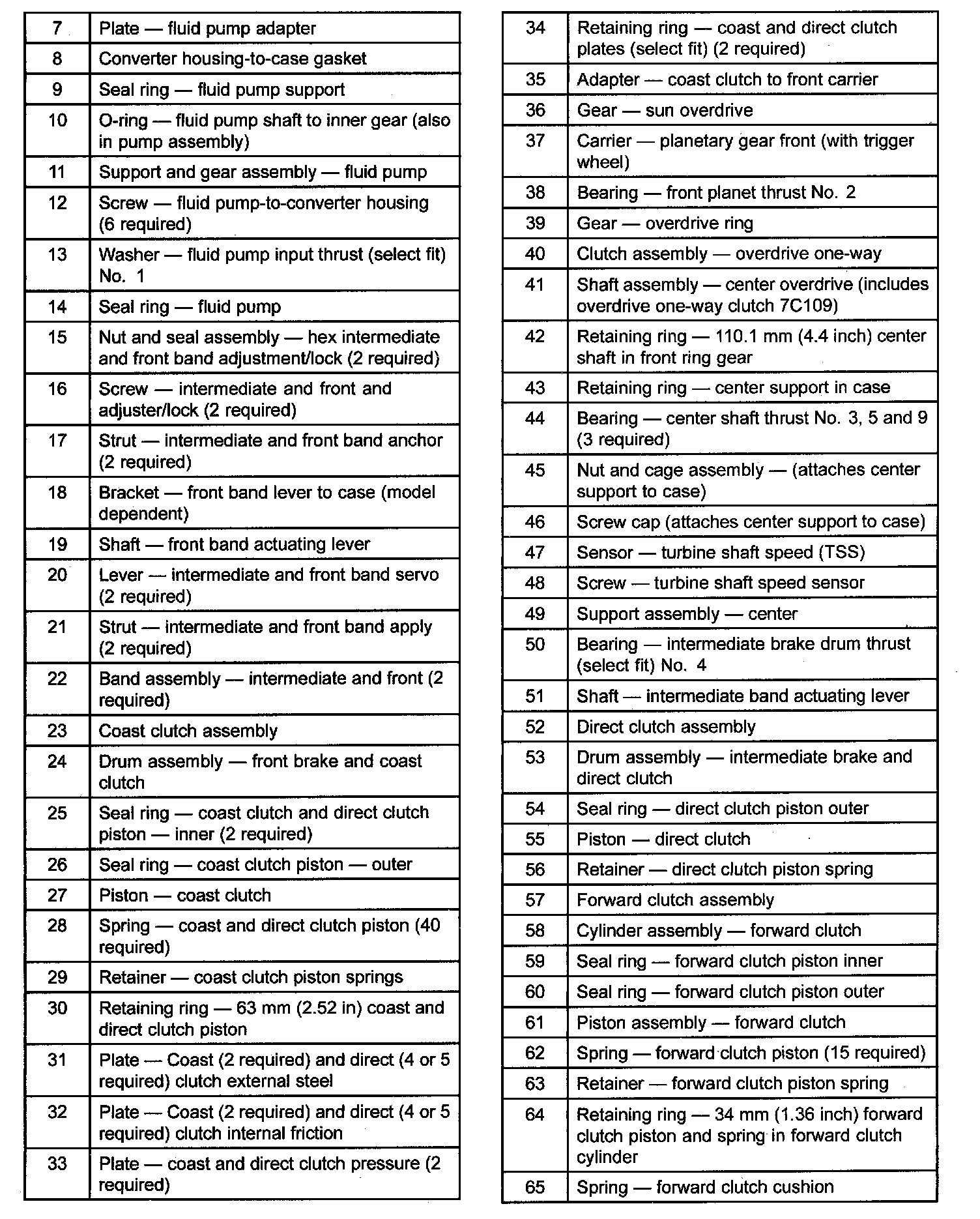 ^ The reverse one-way clutch holds the reverse brake drum and reverse planetary assembly to the case in 1st gear only.
