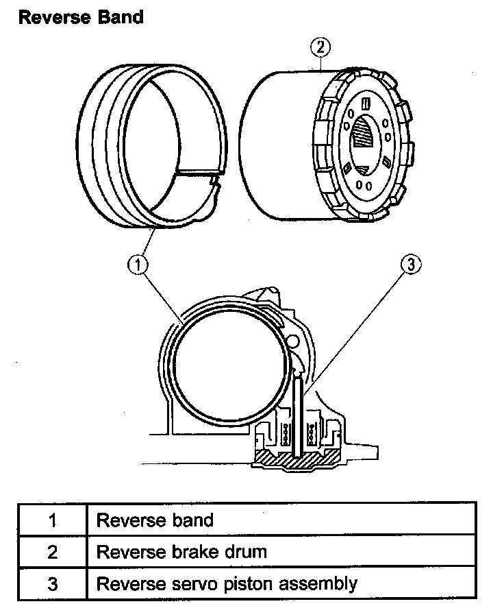 ^ The reverse band holds the reverse brake to the case in 1st position and reverse gears.