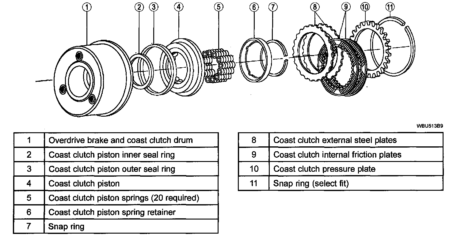 ^ The coast clutch is applied with hydraulic pressure and disengaged by return springs and the exhaust of the hydraulic pressure.