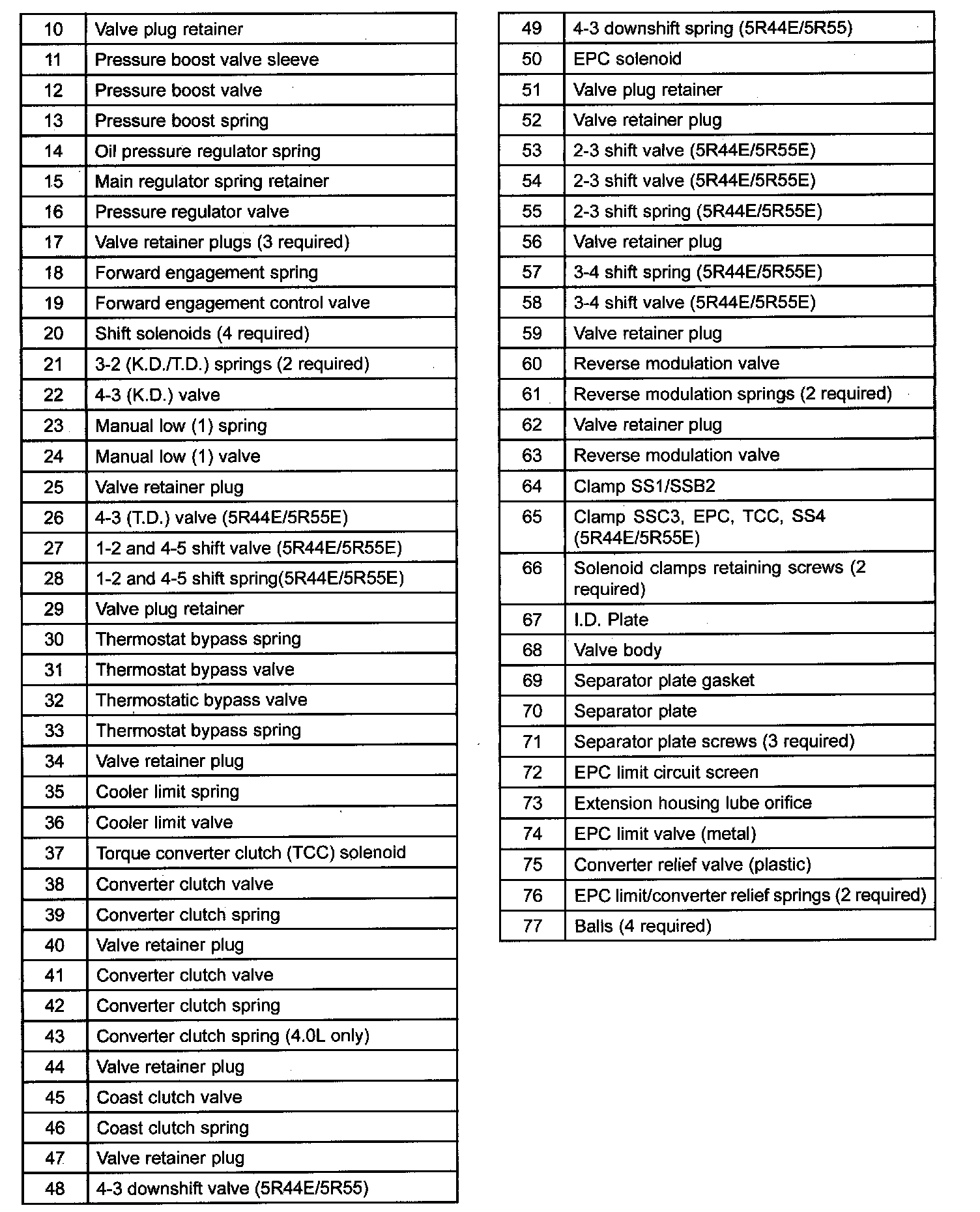 ^ The overdrive one-way clutch overruns during all coast operations and at all times in 5th gear.