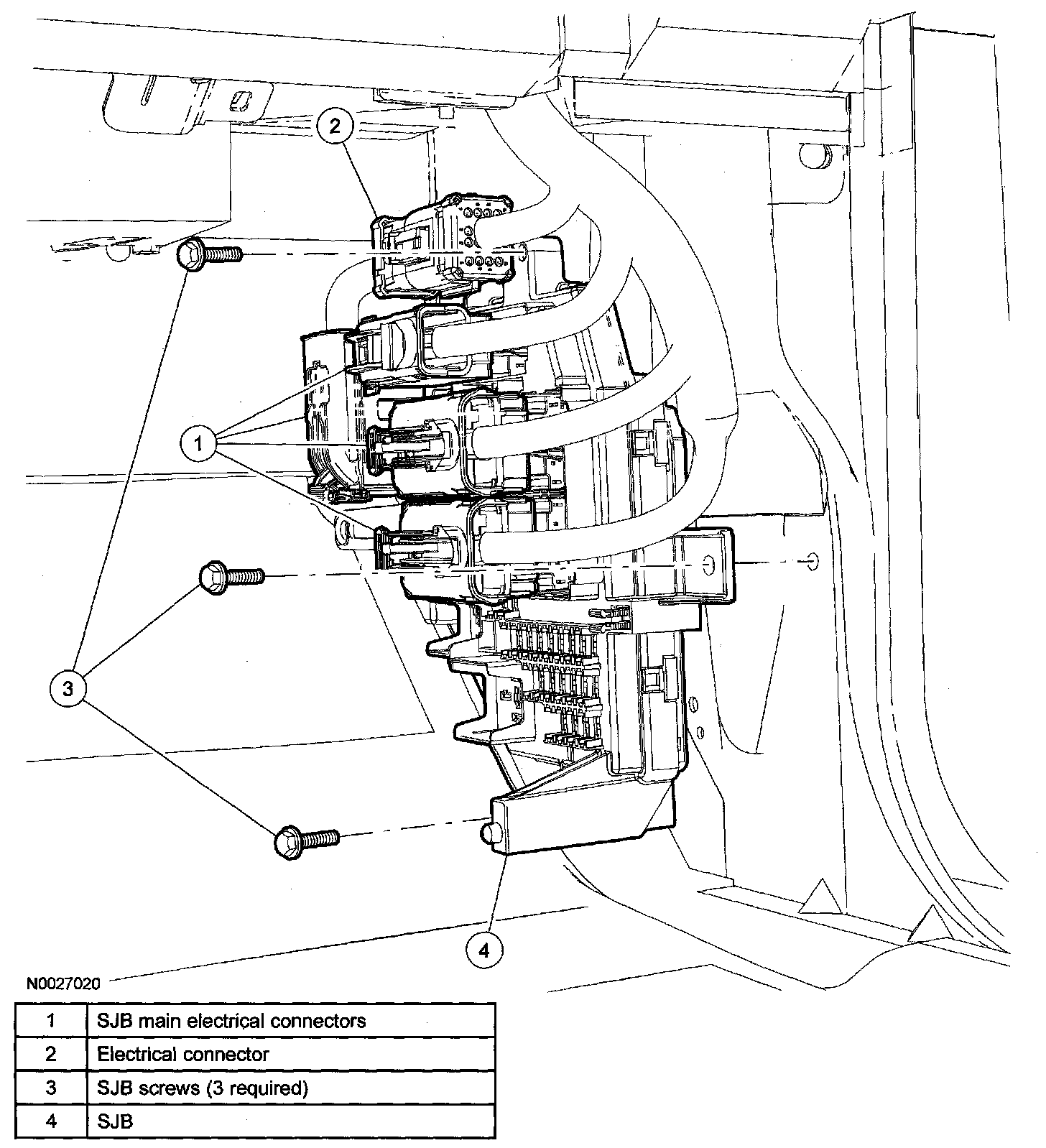 4. Remove the 3 screws and the SJB.