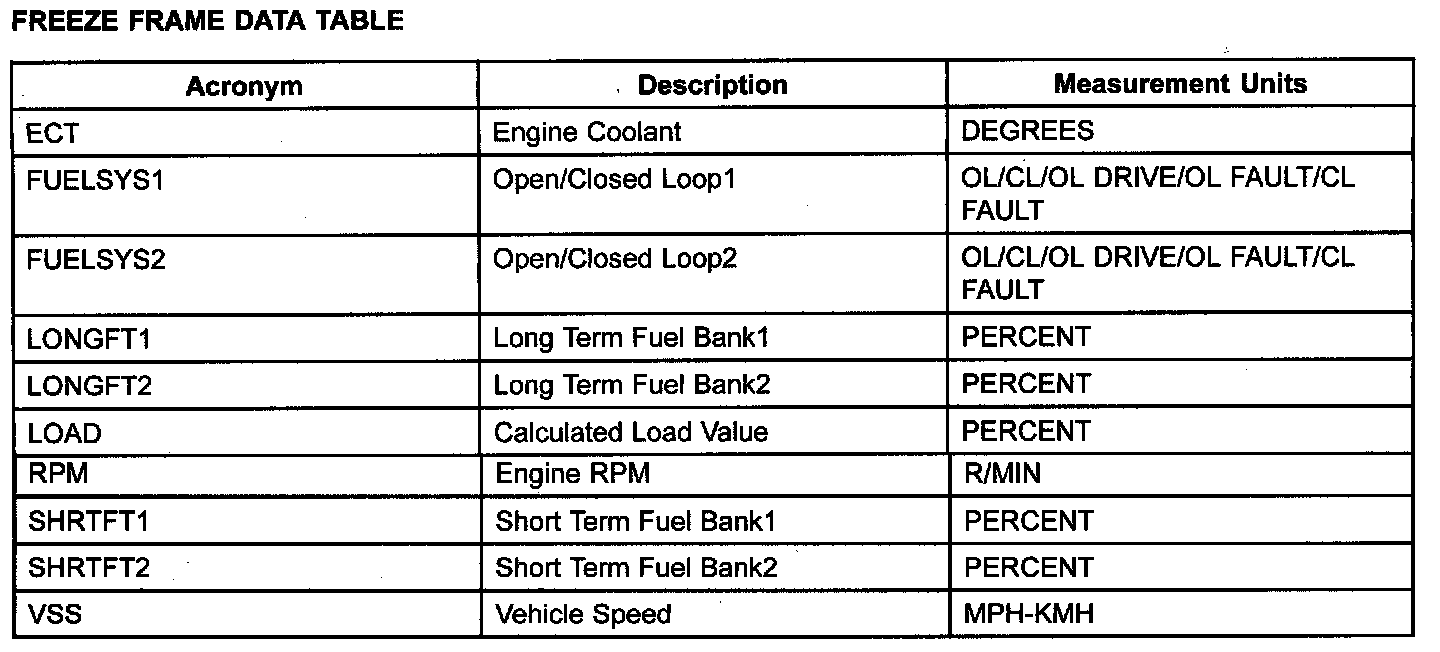 FREEZE FRAME DATA TABLEFreeze Frame Data Table: