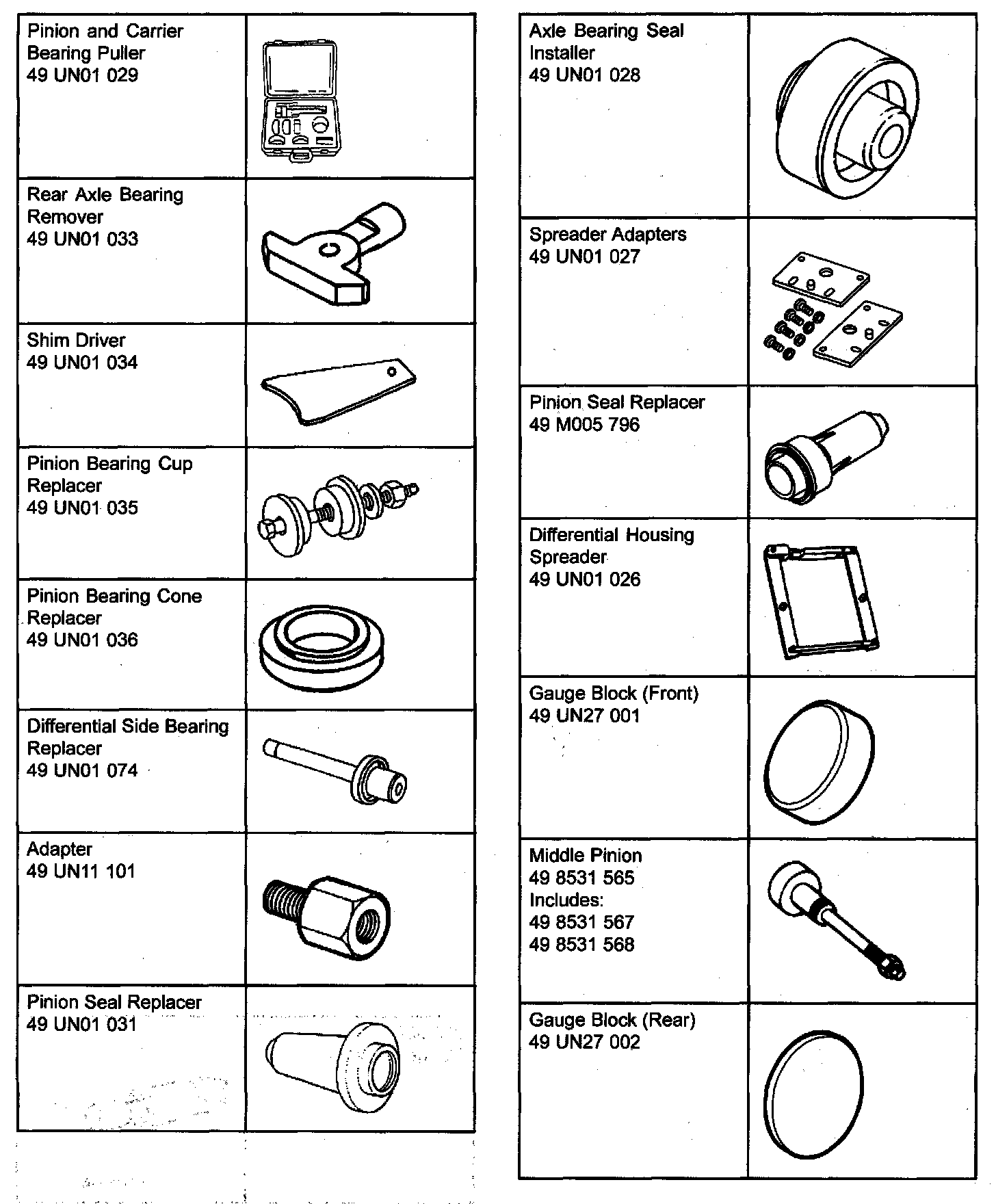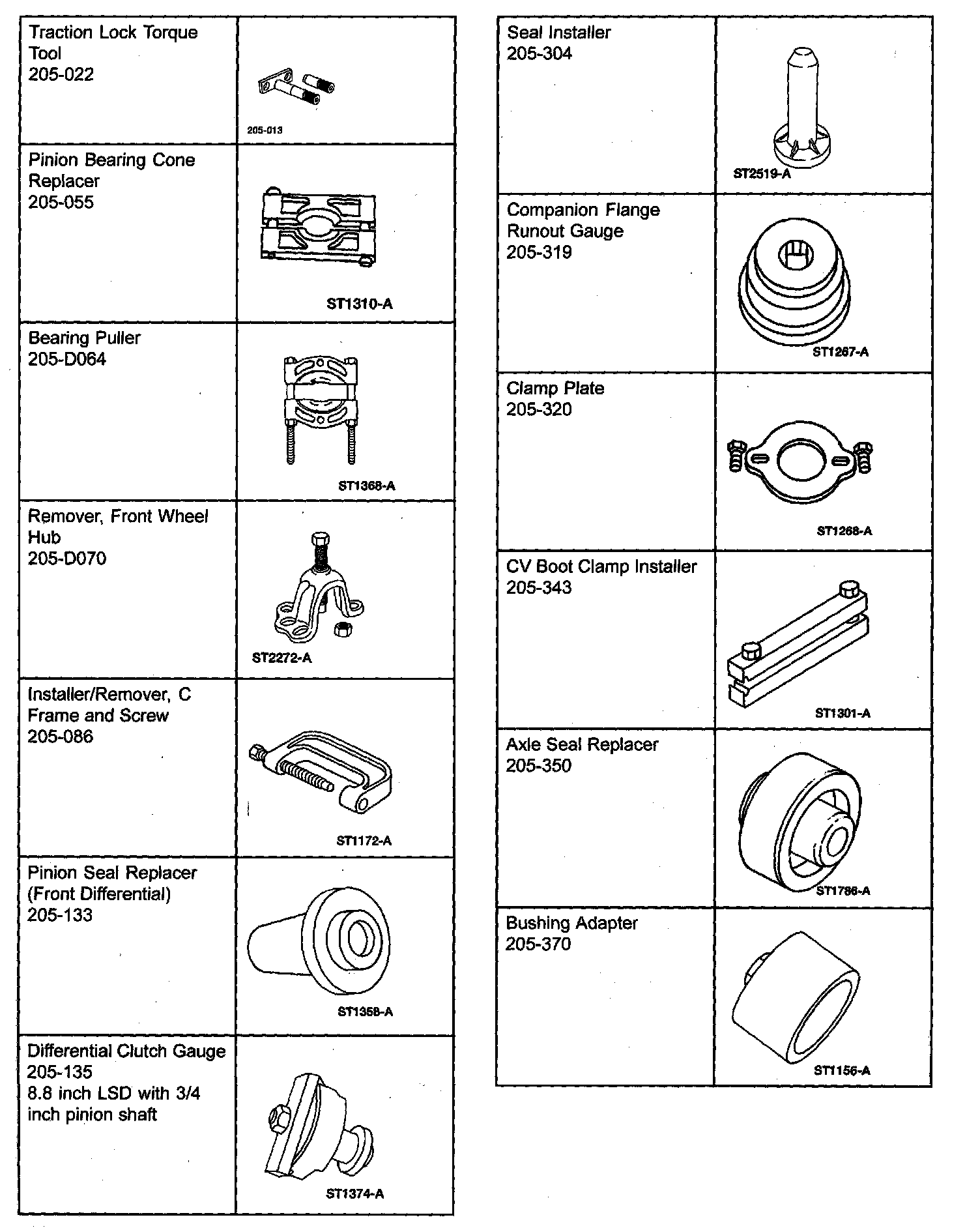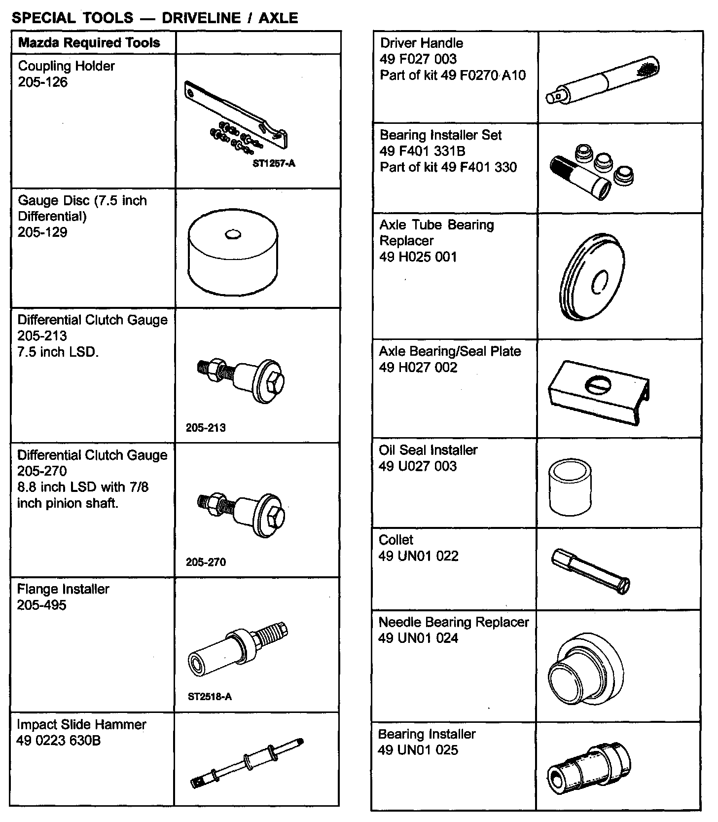SPECIAL TOOLS - DRIVELINE / AXLE