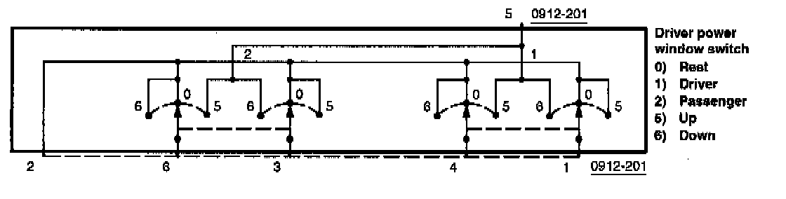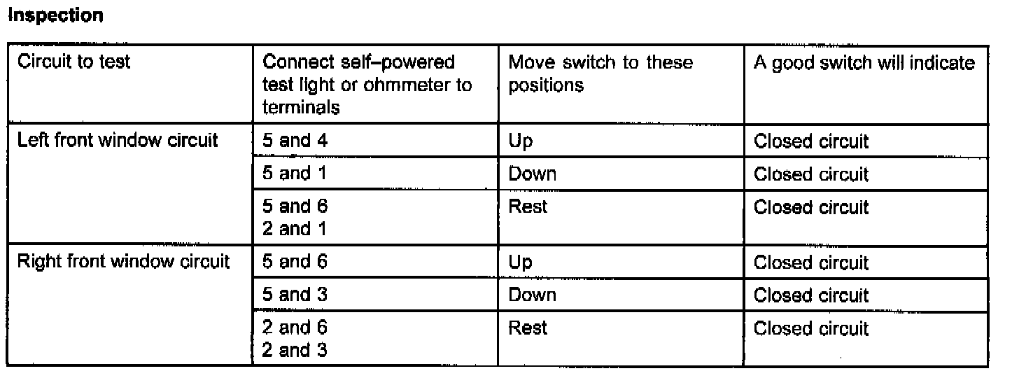 2. Inspect for continuity between the power window main switch terminals using an ohmmeter.