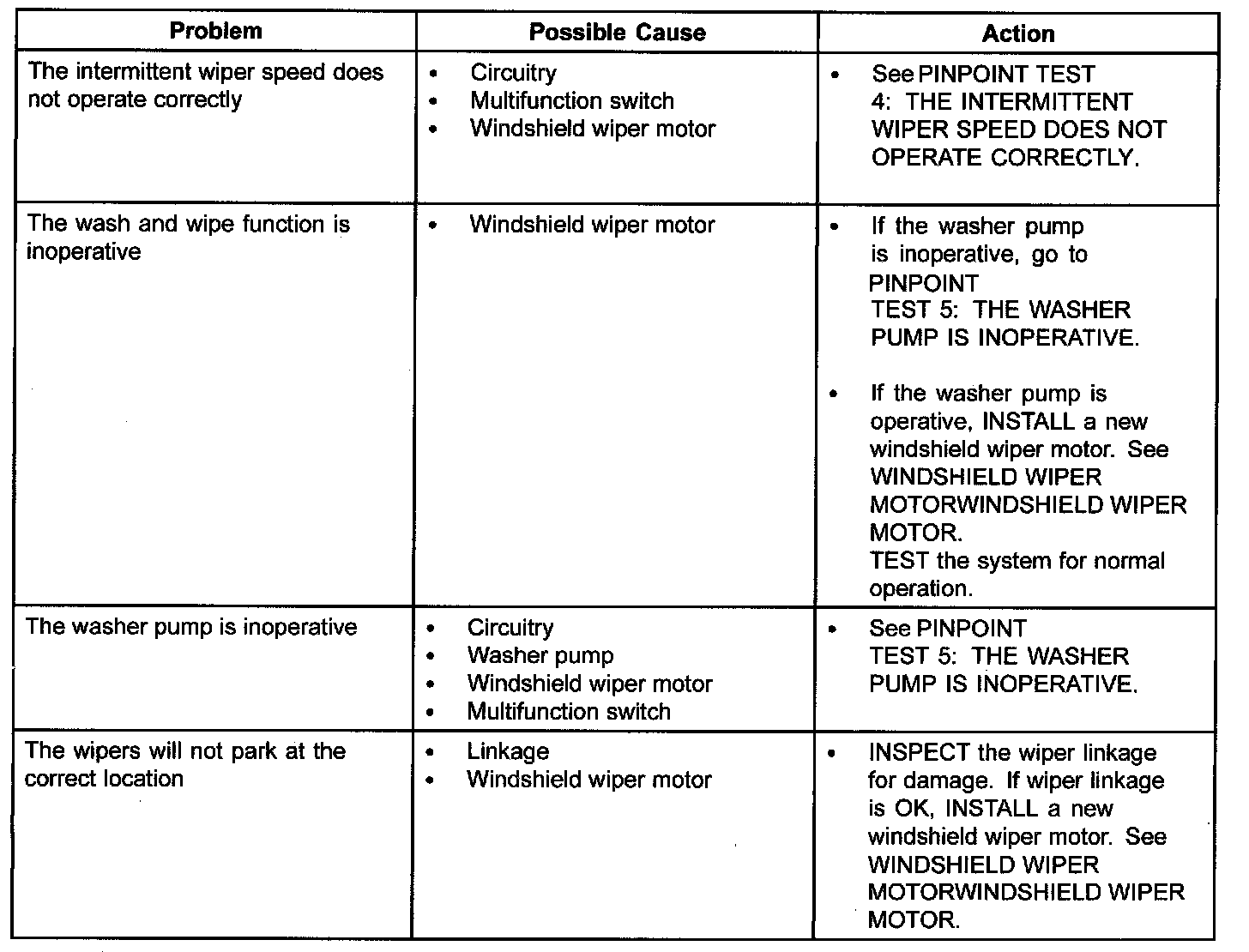 Symptom Troubleshooting Chart-Wipers And Washers (Part 2):