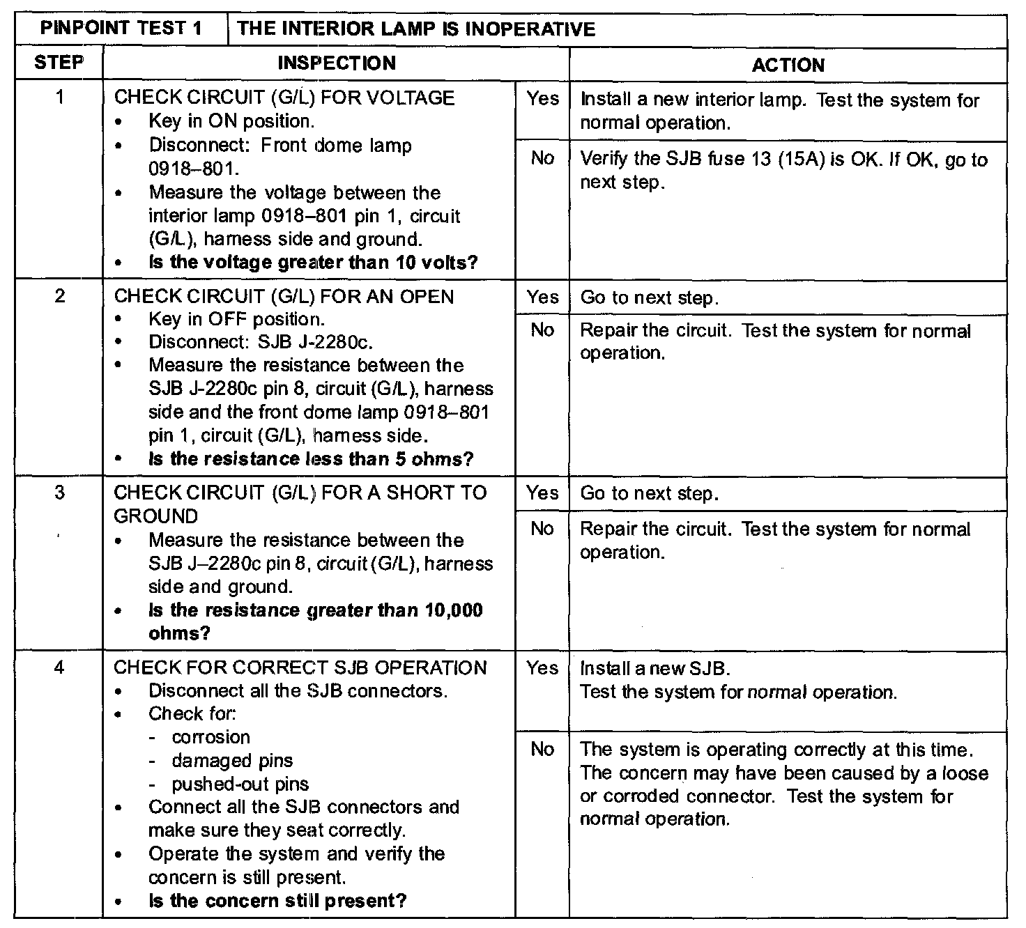 PINPOINT TEST 1: THE INTERIOR LAMP IS INOPERATIVEStep 1-Step 4: