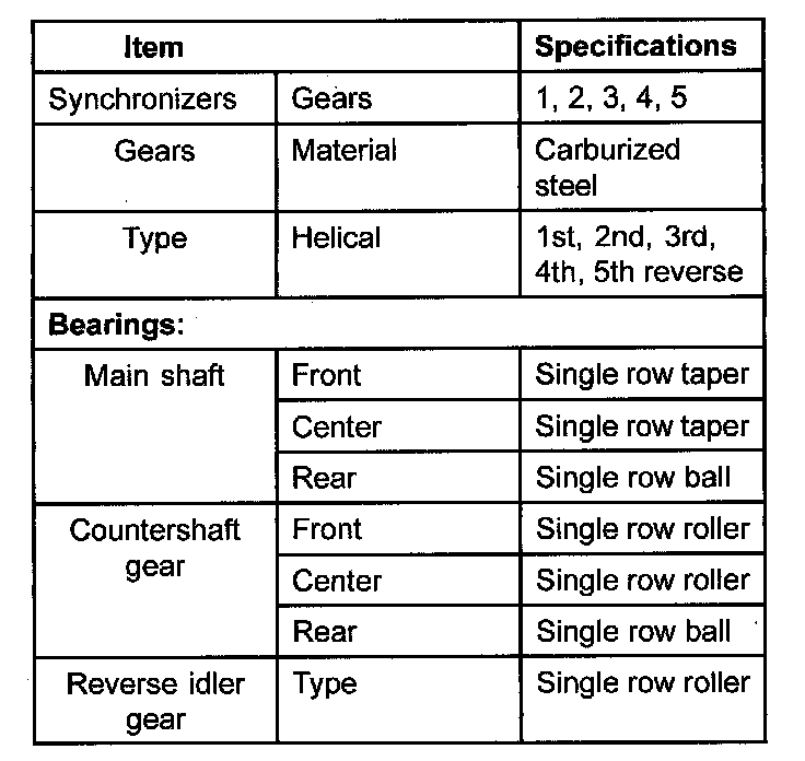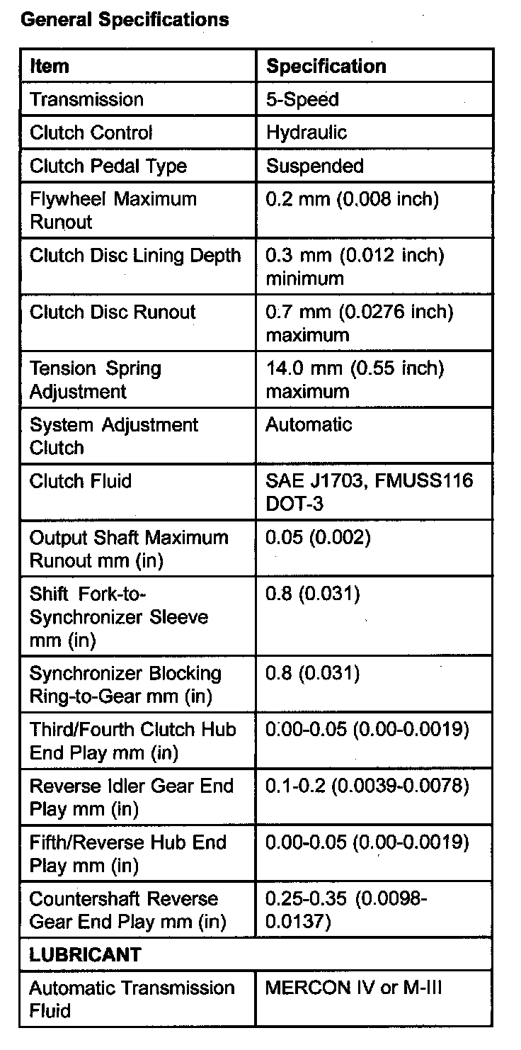 MANUAL TRANSMISSION AND CLUTCH SPECIFICATIONS