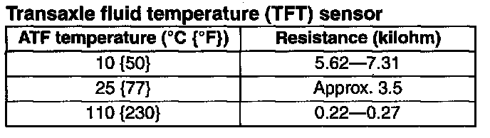 Transaxle Fluid Temperature (TFT) Sensor: