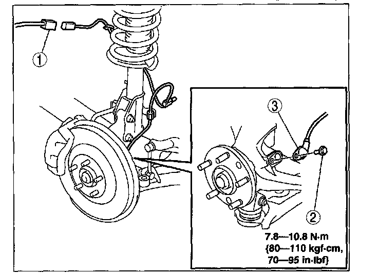 FRONT ABS WHEEL-SPEED SENSOR REMOVAL/INSTALLATION1. When removing the right front ABS wheel-speed sensor, perform the following procedure.