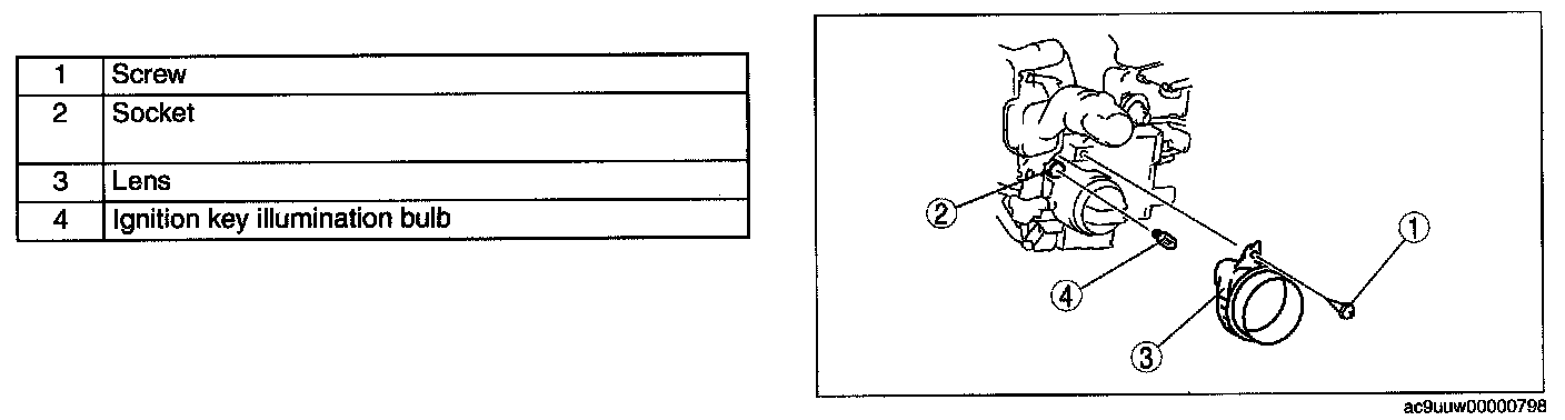 IGNITION KEY ILLUMINATION BULB REMOVAL/INSTALLATIONVehicles Without Advanced Keyless System