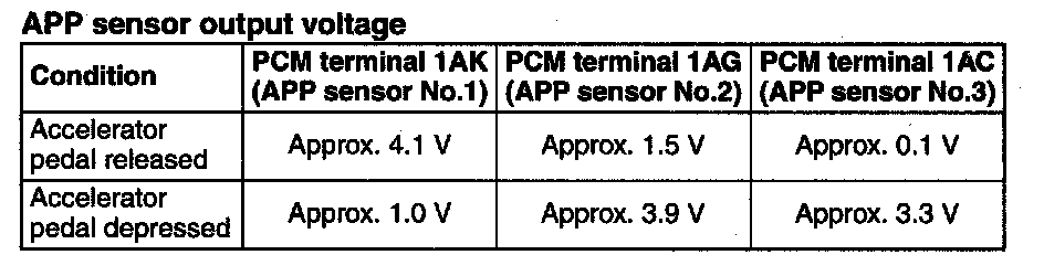 ACCELERATOR PEDAL POSITION (APP) SENSOR INSPECTION [MZI-3.7]