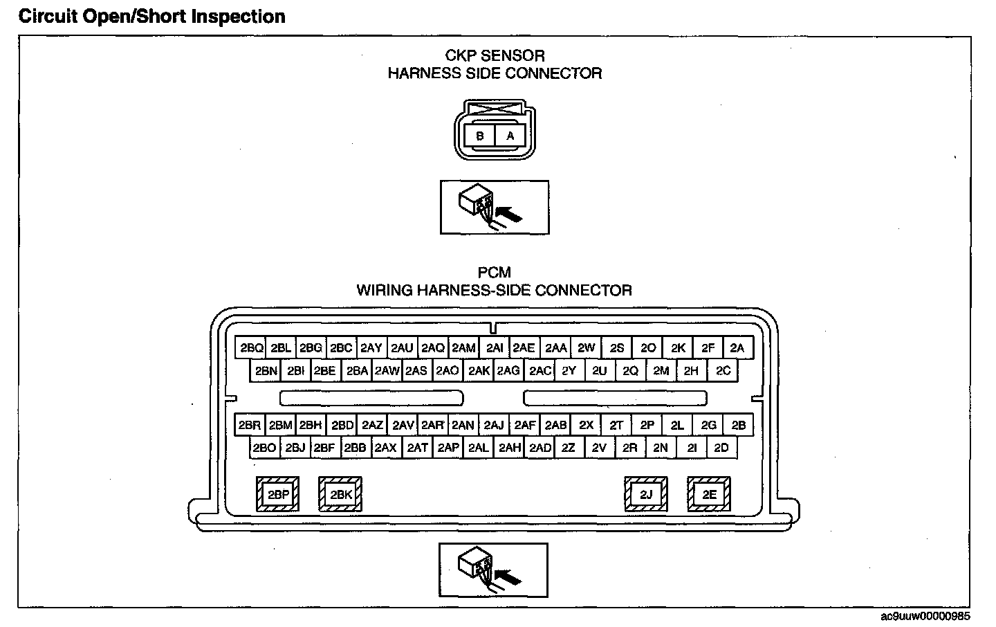 CRANKSHAFT POSITION (CKP) SENSOR INSPECTION [MZI-3.7]NOTE: Before performing the following inspection, make sure to follow the procedure as indicated in the troubleshooting flowchart. (See HOW TO USE THIS MANUAL.)