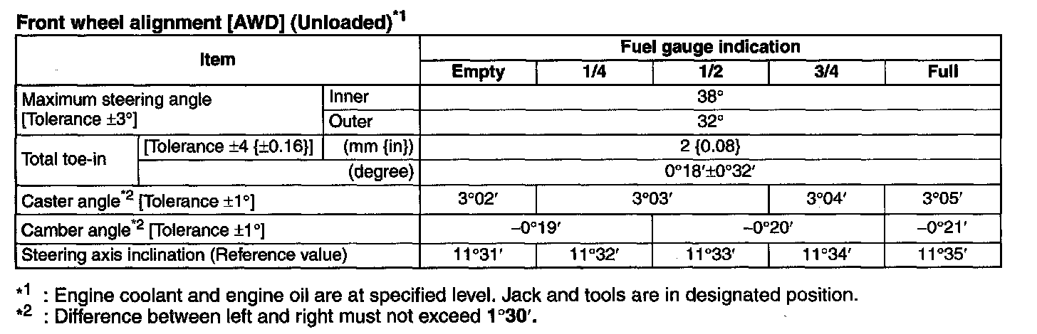 Front Wheel Alignment [AWD] (Unloaded) *1