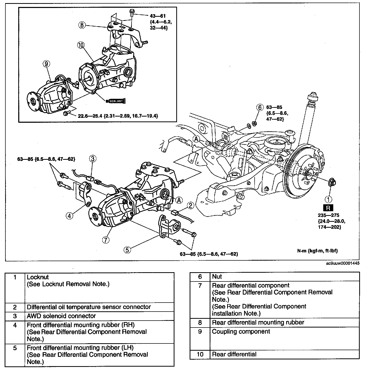 Rear Differential Component Removal Note