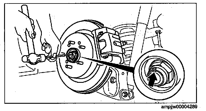 ^ Do not remove the locknut when lowering the rear differential. Otherwise, the rear drive shaft could fall and cause injury, or damage the part.