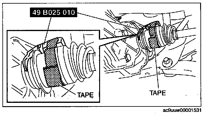 2. Position the SST on the driveshaft and secure the SST with tape as shown in the figure.