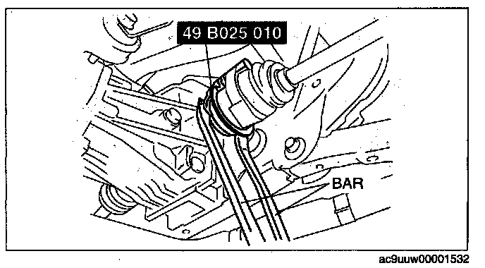3. Disconnect the rear drive shaft from the rear differential side using the SST and two bars.