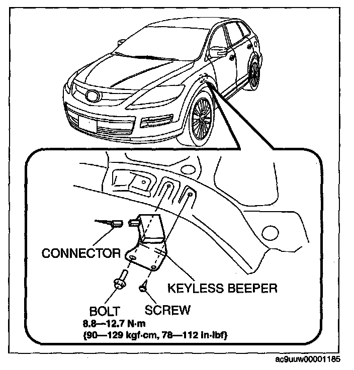 KEYLESS BEEPER REMOVAL/INSTALLATION [ADVANCED KEYLESS SYSTEM]1. Disconnect the negative battery cable.