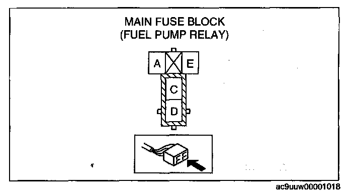 3. Using a jumper wire, short fuel pump relay terminals C and D in the main fuse block.