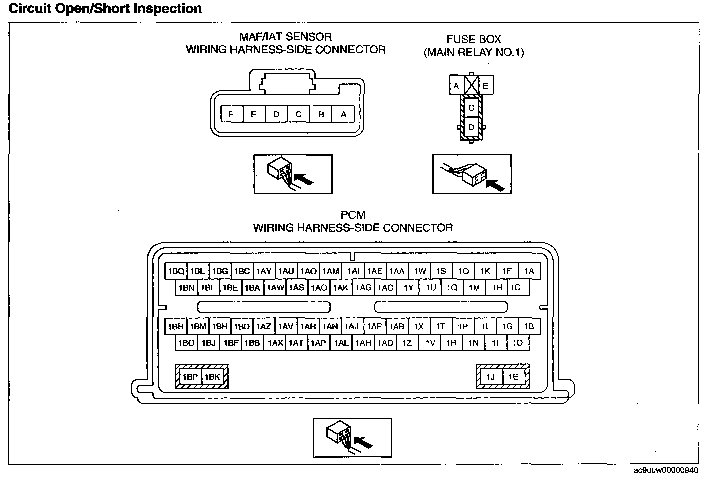- MAF/IAT sensor terminal A and main relay No.1 terminal D