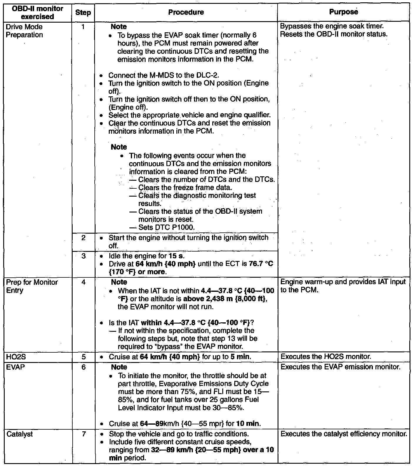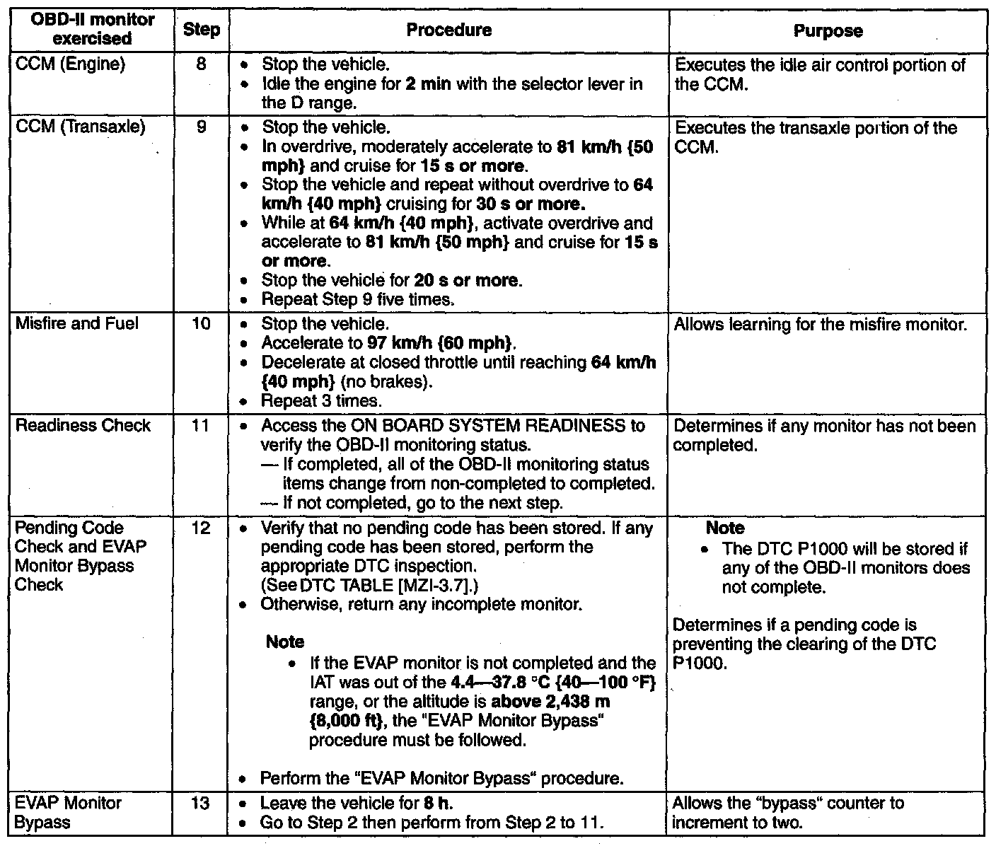 OBD-II DRIVE MODE [MZI-3.7]- The following procedure is designed to execute and complete the OBD-II monitors and to clear the DTC P1000.