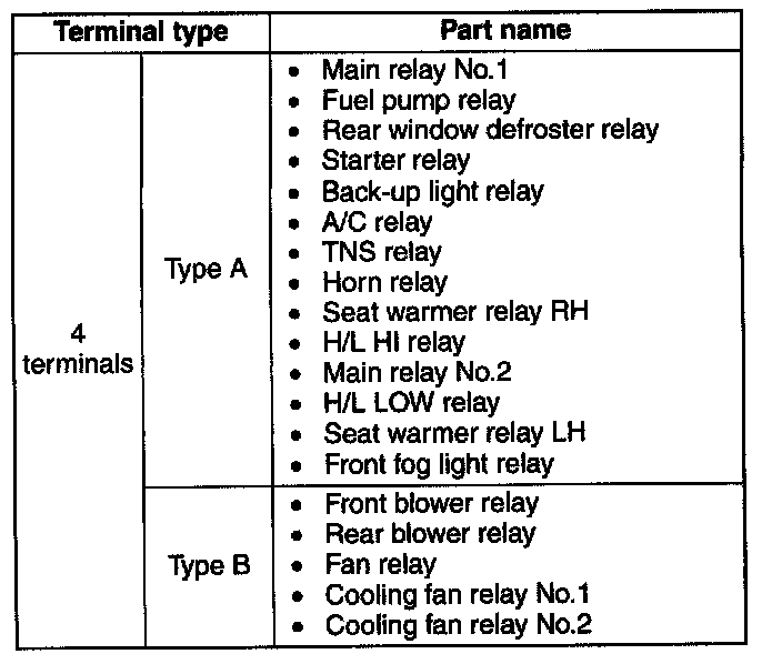 If not as indicated in the table, replace the relay.