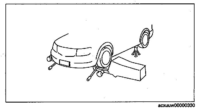 3. Support the wheels on the side not to be measured (near the wheels) using safety stands.