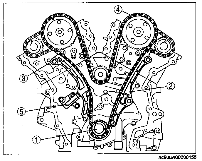 Timing Chain TensionerInstall the timing chain in the following order.