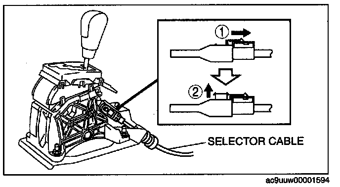 3. Unlock the lock piece of the selector cable (selector lever side) in the order shown in the figure.