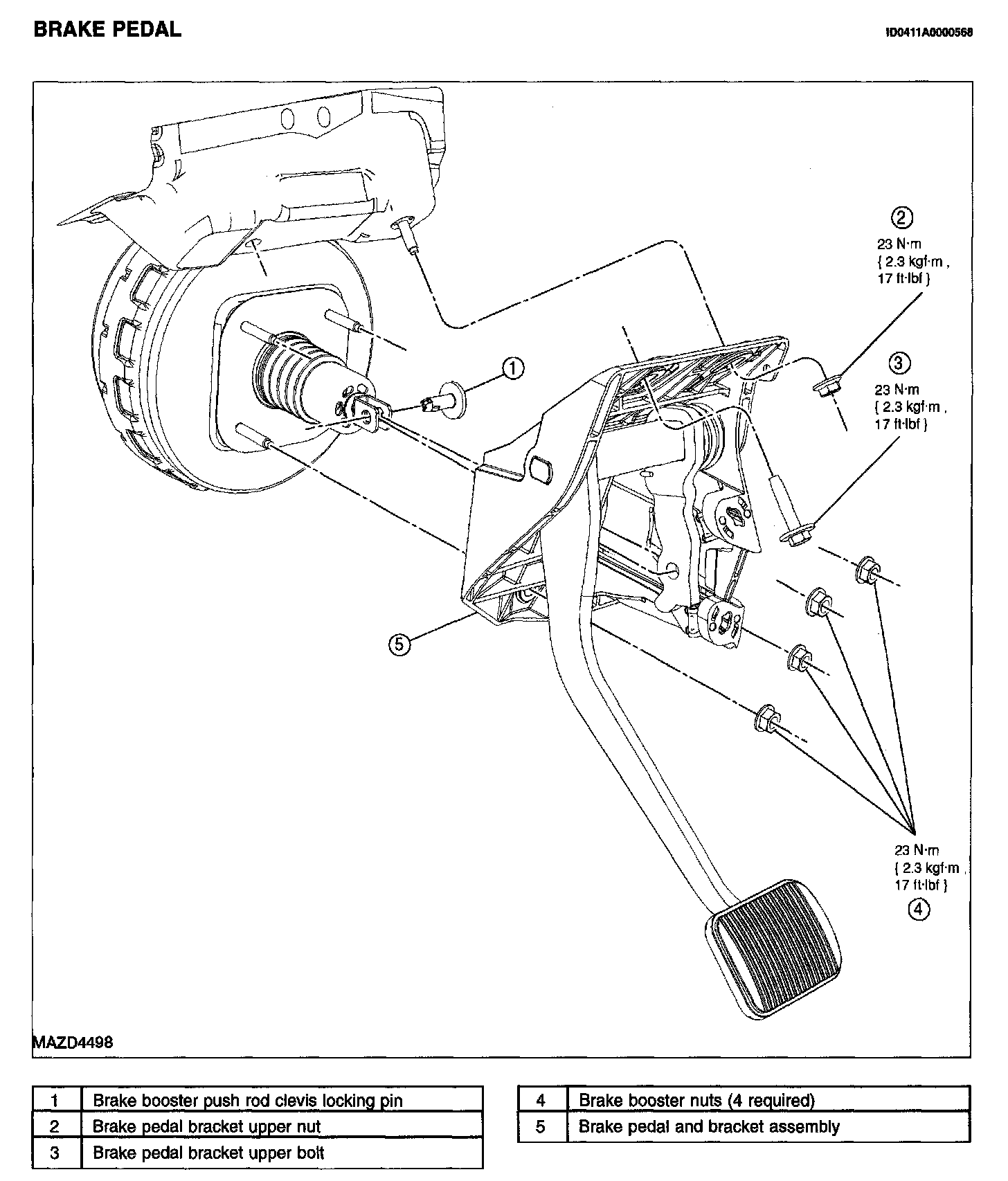 BRAKE PEDAL REMOVAL/INSTALLATION1. Disconnect the battery.