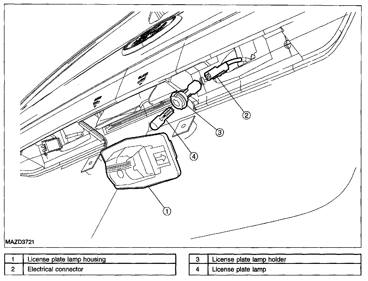 LICENSE PLATE LAMP REMOVAL/INSTALLATION1. Remove the license plate lamp assembly.