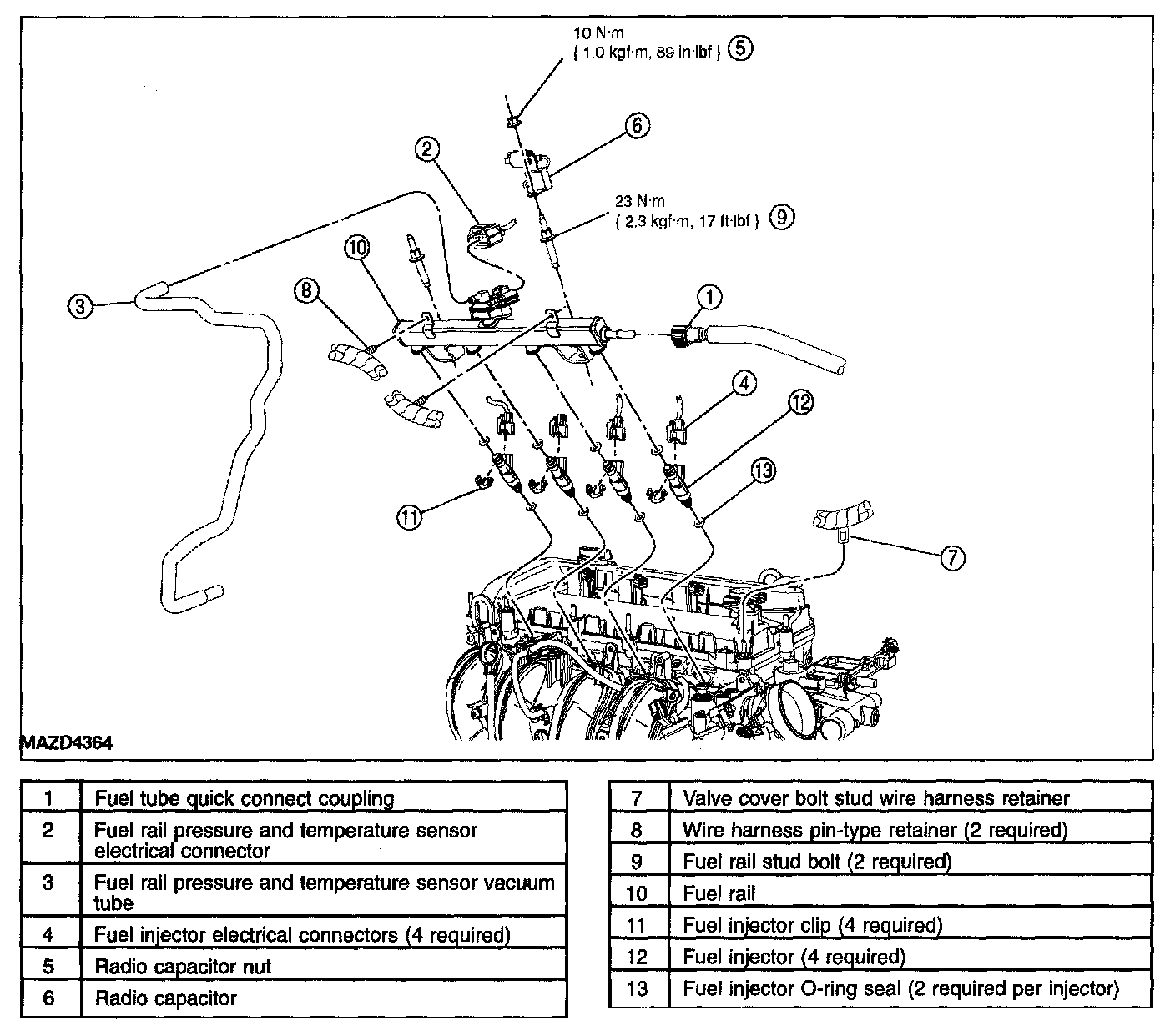 Fuel Rail And Fuel Injector-2.3L Exploded View:
