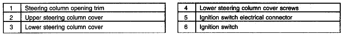 IGNITION SWITCH REMOVAL/INSTALLATIONCAUTION: Do not remove the ignition lock cylinder and the ignition switch at the same time or damage to the column can result.