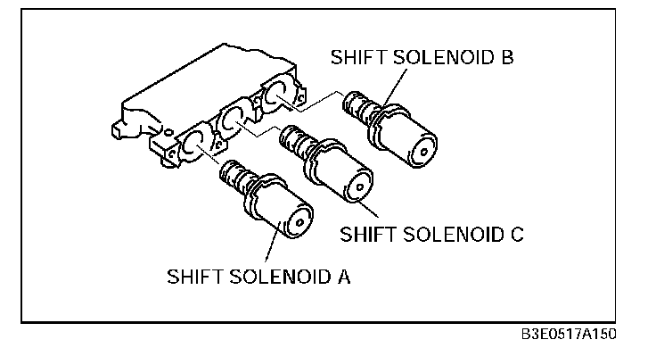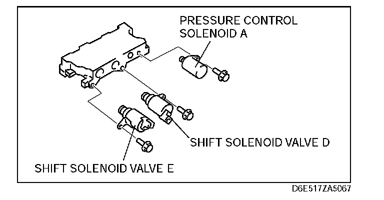 6. Remove the pressure control solenoid A, shift solenoid D, E.