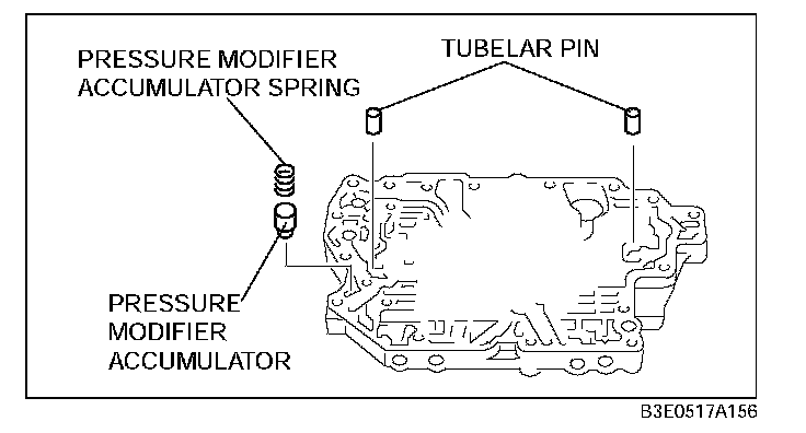 3. Install the pressure modifier accumulator and pressure modifier accumulator spring into the main control valve body.