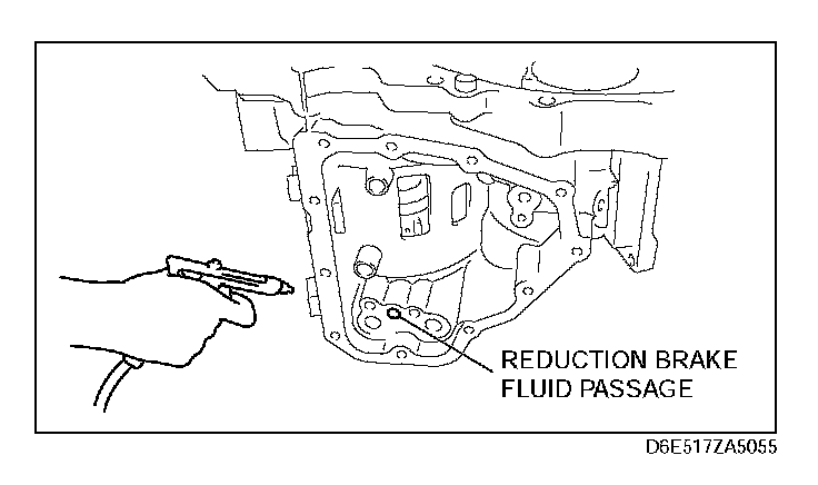 Remove the reduction brake piston by applying compressed air through the fluid passage.